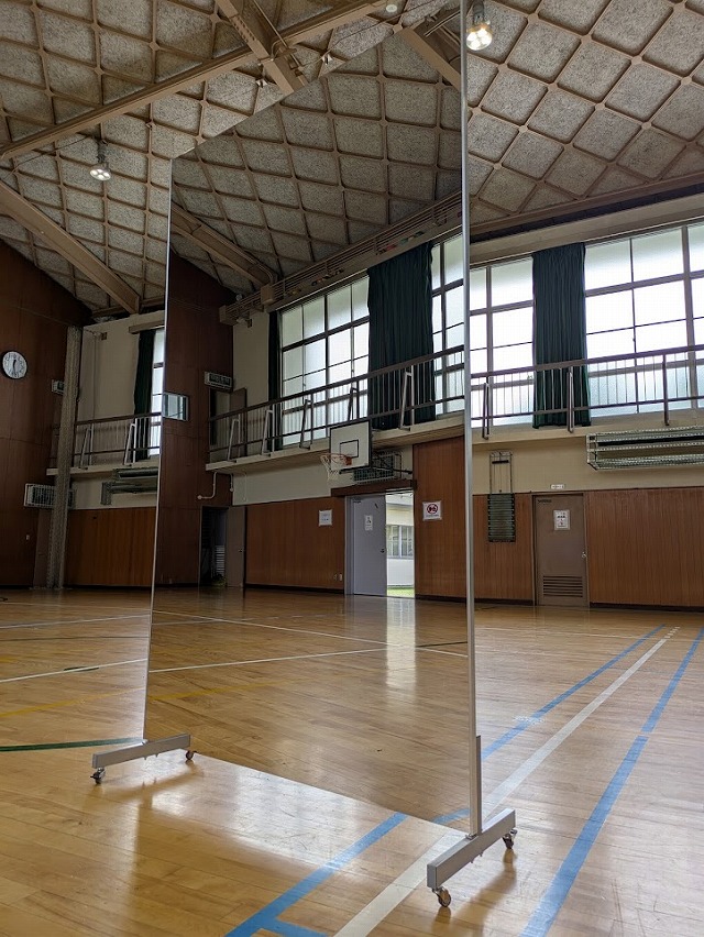 1.体育館等の床に置くときには、キャスター(別売品)が、必要になります。